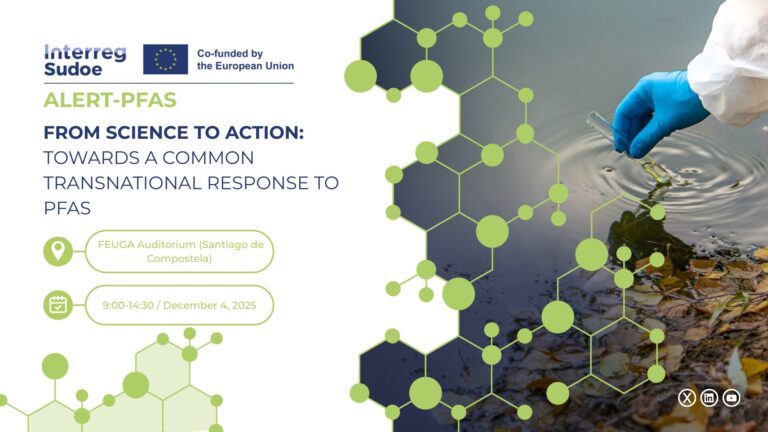 A meeting organised by the ALERT-PFAS project (Interreg SUDOE) to present the Transnational Strategic Plan and the new PFAS Risk Management Tool, two key instruments designed to improve the detection, assessment and prevention of contamination by these persistent substances. The event will bring together public authorities, the scientific community, companies and civil society to address the environmental and health challenges associated with PFAS and to strengthen cooperation between Portugal, Spain and France. It will take place on 4 December at FEUGA (Santiago de Compostela).