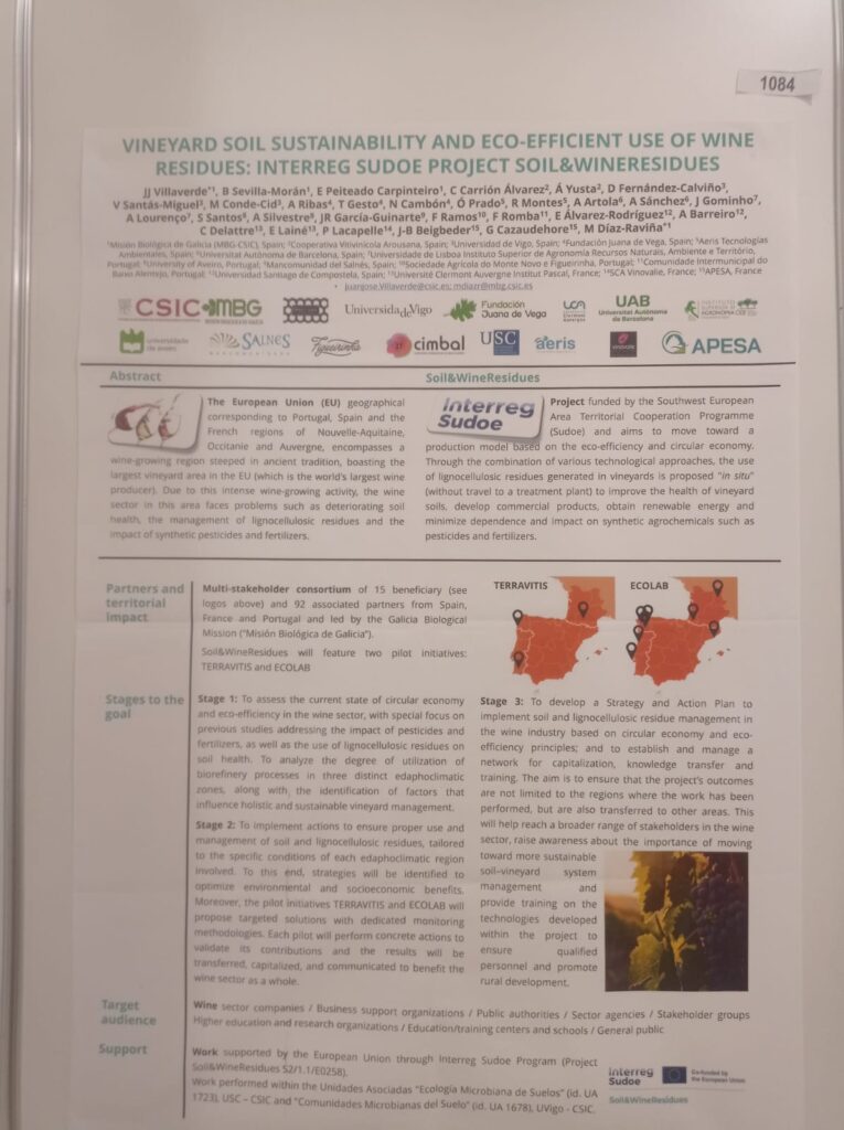On Wednesday, 10 September, researchers from the BCS Associated Units of MBG-CSIC Santiago, UVigo and USC presented the Soil&WineResidues project at the stand of the Spanish Society of Soil Science during the EUROSOIL 2025 conference held in Seville.