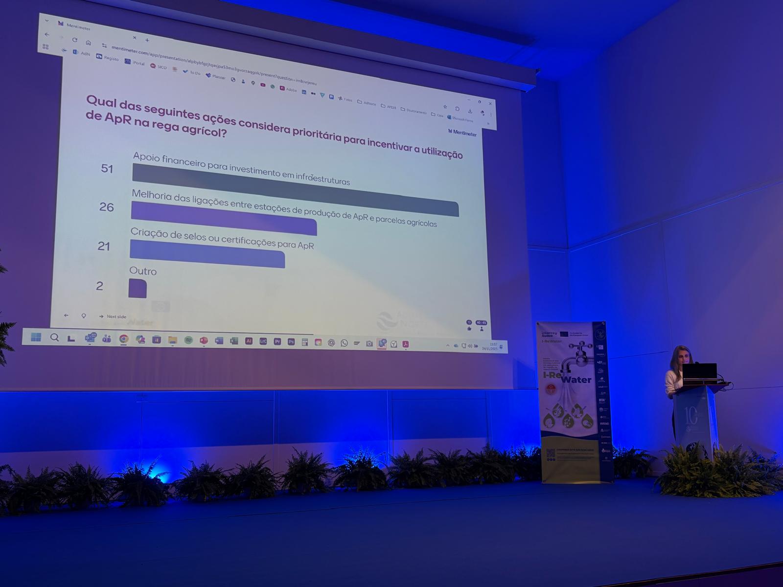 In the second afternoon panel, presentations followed on technologies for the production of reclaimed water, by João Venâncio from Veolia, and on the Reclaimed Water Action Plan of the AdP Group, presented by Carla Cupido from AdP Valor. The participatory process of I-ReWater continued through a survey conducted among the participants in these technical workshops, led by Paula Valle Fernandes from Águas do Norte.