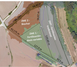 Dentro de esta parcela se han delimitado três zonas com estratégias de fertilización diferentes: