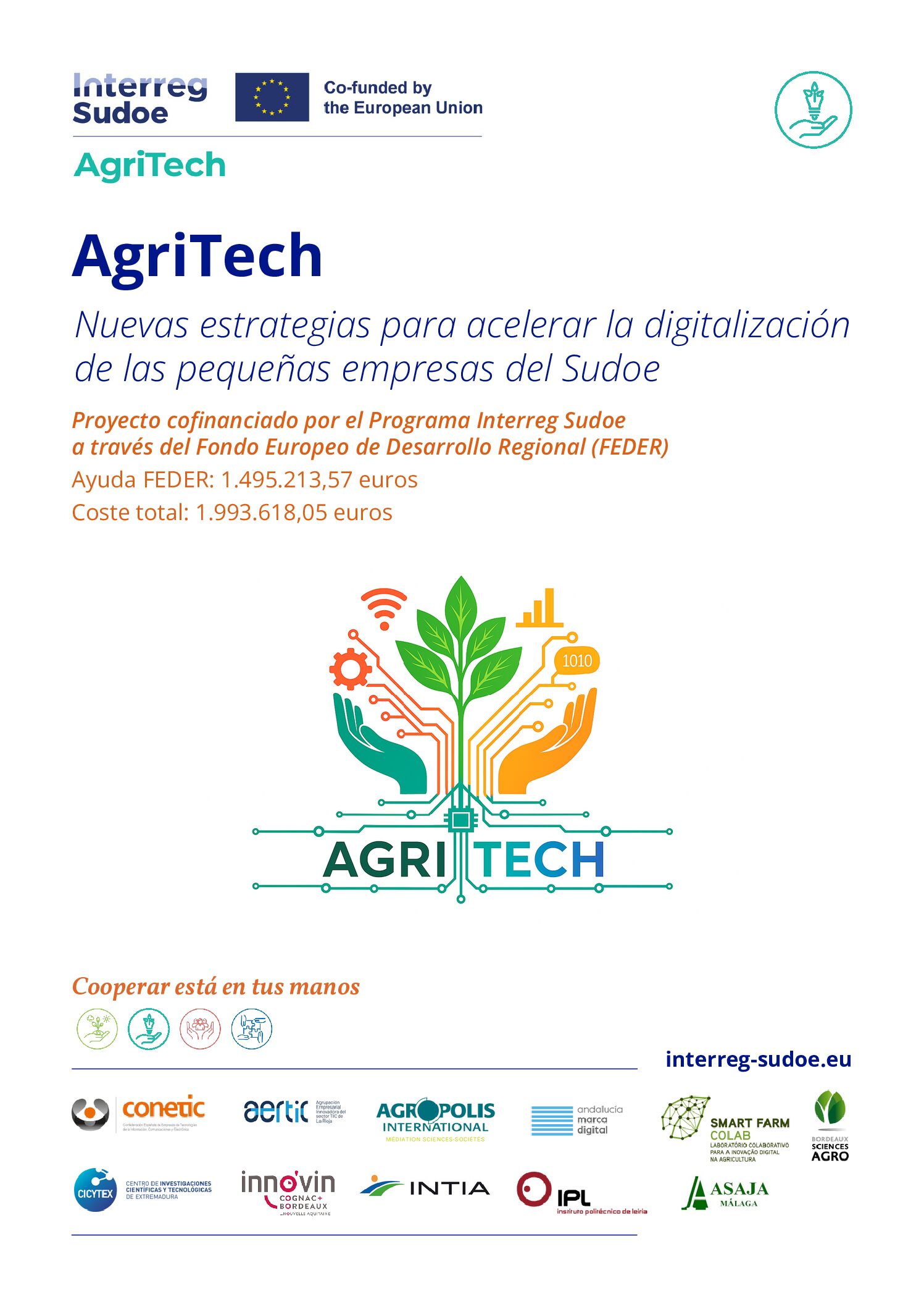 The AGRITECH project addresses the challenge of curbing depopulation in the rural areas of the SUDOE space by promoting the digitalization of its main economic sector, agriculture, as a key tool to tackle the green and digital transitions and make it more competitive, sustainable, and attractive. Statistics show that the agricultural sector, particularly small businesses, suffer from a delay in terms of digitalization. Therefore, the main objective of the project is to accelerate the digital transformation of small agricultural businesses in SUDOE, through new strategies based on a personalized approach (“AgriDemoLab” methodology), which will allow overcoming the current barriers hindering the sector’s digitalization: a technology-centric approach rather than one focused on the needs of each farm, unproven profitability, and insufficient technological culture. The main achievements of the project are: – 1 common strategy for boosting the digital transition of small agricultural businesses and an action plan for its adaptation and adoption in the participating territories of the SUDOE area. – 6 “pilot actions” to test the Strategy using the “AgriDemoLab” methodology in different territorial and agricultural sector contexts. The main innovation of the project is the application of the “AgriDemoLab” methodology, based on 3 aspects: (1) identification of the specific needs of each small agricultural business, (2) personalized support, and (3) peer-to-peer transfer of successful implementations. The project will serve for its definition, testing, adoption by partner organizations, and transfer to other SUDOE organizations. The project is executed by a transnational and multidisciplinary consortium, which integrates the entire value chain: public agencies, research organizations, ICT business associations, agricultural professional organizations, clusters, and social innovation entities.
