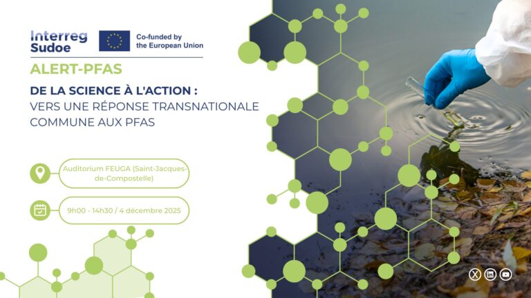 Journée organisée par le projet ALERT-PFAS (Interreg SUDOE) pour présenter le Plan Stratégique Transnational et le nouvel Outil de Gestion du Risque PFAS, deux instruments clés destinés à améliorer la détection, l’évaluation et la prévention de la contamination par ces substances persistantes. L’événement réunira administrations, communauté scientifique, entreprises et société civile afin d’aborder les défis environnementaux et sanitaires liés aux PFAS et de renforcer la coopération entre le Portugal, l’Espagne et la France. Il se tiendra le 4 décembre à la FEUGA (Saint-Jacques-de-Compostelle).