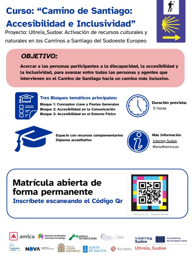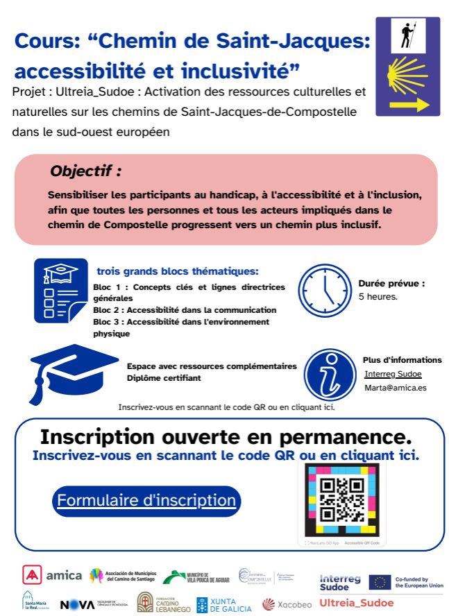 Le cours, dispensé par Amica, s’inscrit dans le cadre du projet Ultreia Sudoe. À l’issue de la formation, les participant·e·s recevront un certificat officiel.