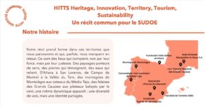 HITTS fait face aux défis suivants communs à l’espace SUDOE : dépeuplement, vieillissement et fuite des ressources humaines à haute valeur ajoutée ; faible valorisation du patrimoine, notamment artistique et culturel, comme moteur de l’activité écotouristique ; niveau insuffisant de conscience de sa valeur ajoutée, manque de travail collaboratif entre l’ensemble des acteurs locaux pour assurer sa promotion. L’objectif principal de HITTS est de valoriser les singularités culturelles, naturelles et patrimoniales des territoires ruraux du SUDOE en s’appuyant sur la revitalisation du patrimoine culturel et naturel, la création artistique et le développement de la collaboration public-privé à travers des méthodologies et des outils innovants pour promouvoir un tourisme durable et écologique. HITTS est un projet innovant qui vise à mener des actions transnationales de promotion d’un tourisme durable basé sur la valorisation du patrimoine culturel et naturel des zones rurales de l’espace SUDOE en mobilisant et impliquant les acteurs privés et publics locaux tout au long de l’exécution du projet. Le parti-pris de HITTS est de valoriser le patrimoine en s’appuyant sur les productions artistiques et culturelles, le développement de stratégies public-privé avec la perspective d’une gouvernance renouvelée. Le projet commencera par des actions axées sur l’implication de tous les acteurs des zones rurales d’intervention (GT1) à travers la création de laboratoires territoriaux. Un diagnostic participatif sera élaboré par territoire pour évaluer les ressources patrimoniales, culturelles et artistiques endogènes et 15 bonnes pratiques seront identifées. Une stratégie commune sera conçue pour le développement socio-économique innovant et durable des territoires ruraux de l’espace SUDOE (GT2), qui sera la principale réalisation du projet, basée sur la valorisation touristique de son patrimoine culturel et naturel. Enfin, HITTS propose la mise en place d’actions pilotes issues de la stratégie, adaptées aux singularités et besoins de chaque territoire.