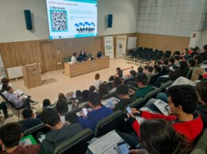 Con el propósito de fomentar una participación activa e inclusiva, la actividad contó con interpretación en lengua de signos, garantizando la plena accesibilidad de todos los asistentes. Además, se emplearon metodologías pedagógicas digitales, como la herramienta interactiva Mentimeter, que permitió la participación del alumnado en tiempo real mediante sus dispositivos móviles, dinamizando el aprendizaje y el intercambio de ideas. La formación también constituyó un espacio de reflexión sobre los retos que plantea la transición hacia una industria más sostenible, tanto desde la perspectiva empresarial como desde el ámbito de las políticas públicas europeas.