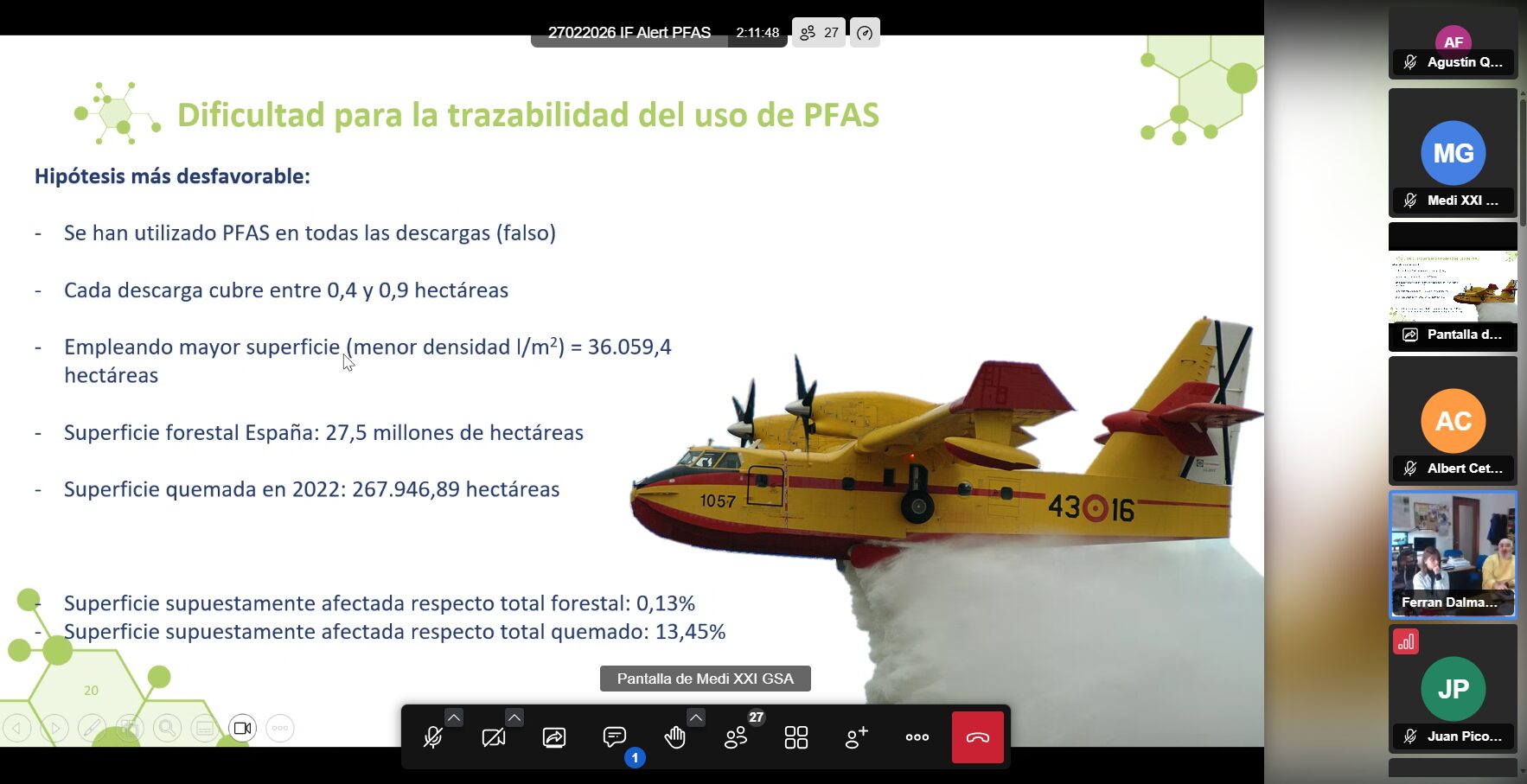 El proyecto ALERT-PFAS celebró recientemente la jornada “PFAS, incendios y territorio: estrategias de acción ante una problemática emergente”, con la más de 60 registrados y profesionales del ámbito ambiental, académico y empresarial.