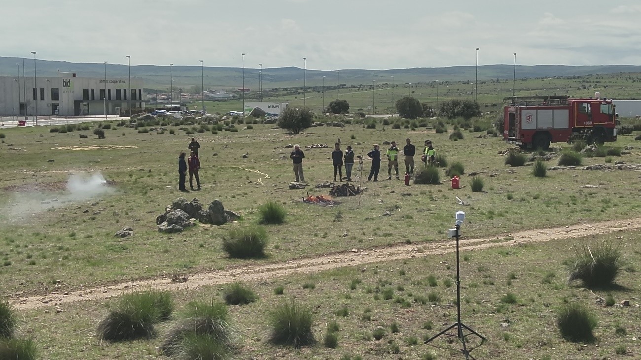 Con motivo de la próxima campaña de alto riesgo de incendios forestales, el proyecto SenForFire del programa Interreg Sudoe ha participado en pruebas experimentales para evaluar tecnologías de detección temprana de incendios basadas en sensores. Estas pruebas se llevaron a cabo el 7 de mayo en el polígono industrial de Vicolozano (Ávila), en el marco de la colaboración con el proyecto europeo TREEADS (“Improving forest management with a focus on protection and regeneration”, H2020, 2021–2025), impulsada por la Diputación de Ávila.