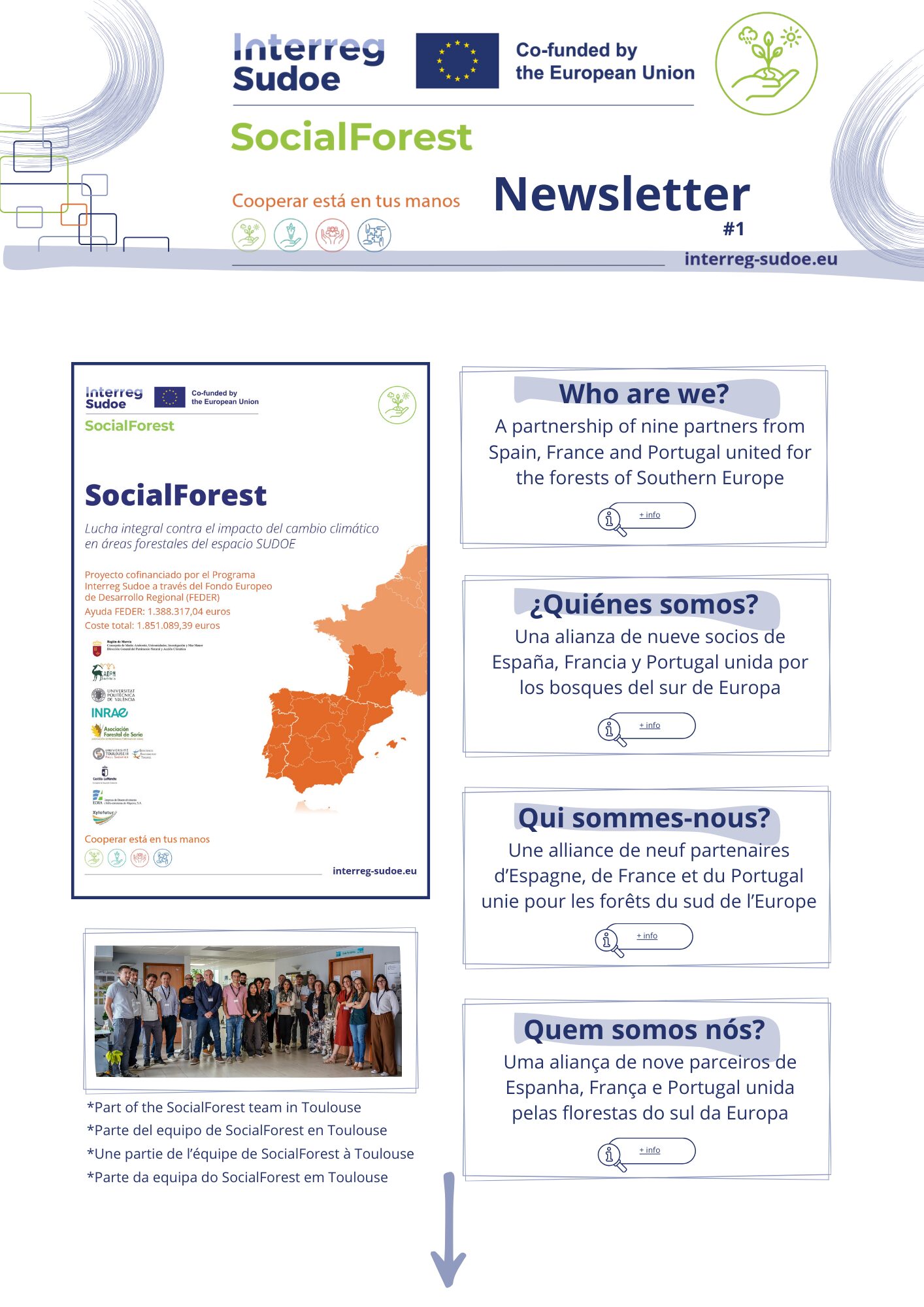 El proyecto SocialForest, iniciativa Interreg Sudoe orientada a mitigar los efectos del cambio climático en los bosques del sur de Europa, acaba de lanzar la primera edición de su boletín informativo. Este nuevo canal de comunicación busca acercar a la ciudadanía, instituciones y agentes del sector forestal los avances de la investigación y las acciones que se desarrollan en sus distintos sitios piloto.