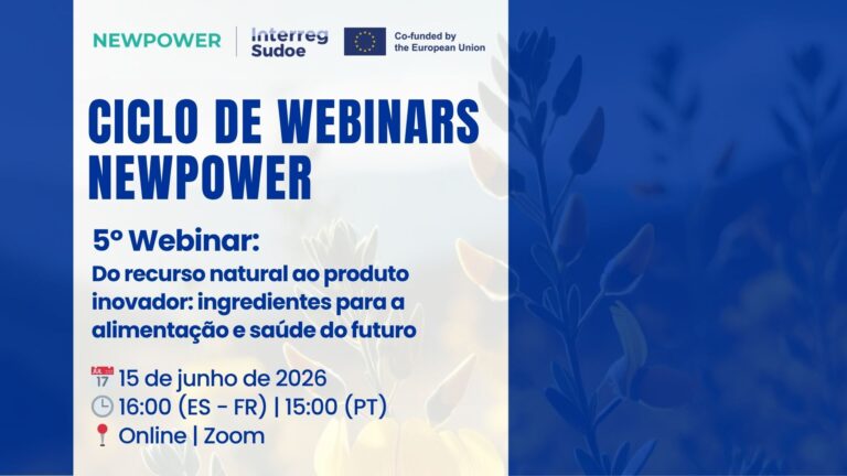 No próximo 15 de junho de 2026, o projeto NEWPOWER realizará o webinar “Do recurso natural ao produto inovador: ingredientes para a alimentação e saúde do futuro”, centrado na valorização de subprodutos agroindustriais e agroflorestais para a obtenção de compostos bioativos com aplicações na alimentação e na saúde.