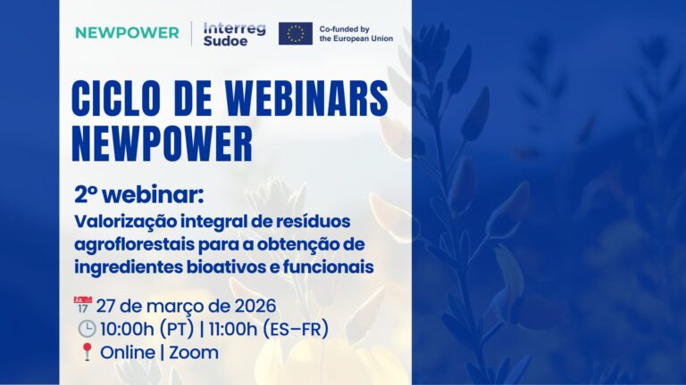 No próximo 27 de março de 2026, o projeto NEWPOWER realizará o webinar “Valorização integral de resíduos agroflorestais para a obtenção de ingredientes bioativos e funcionais”, centrado no potencial dos recursos agroflorestais residuais no âmbito da bioeconomia circular.