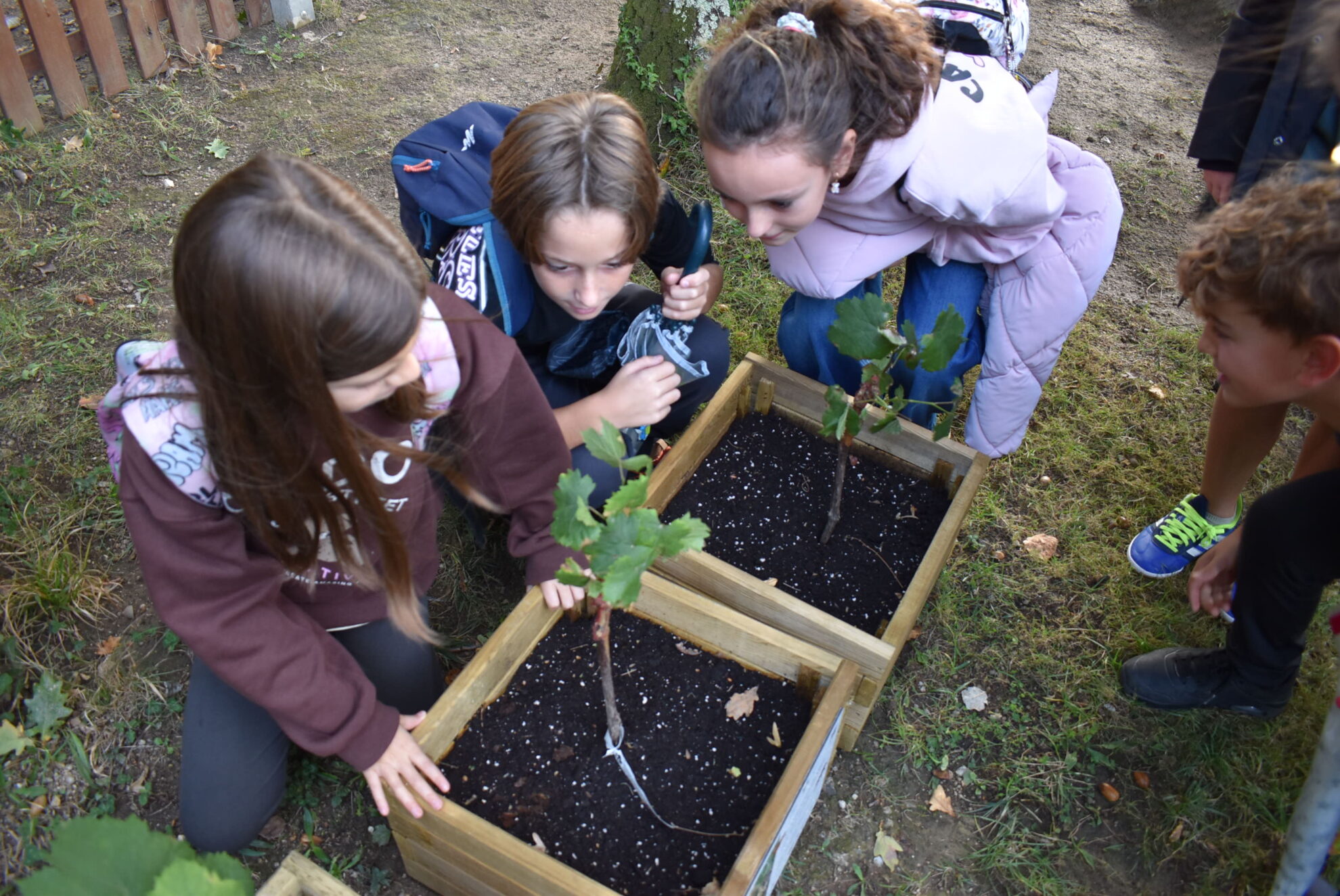Os alunos tornaram-se biólogos por um dia e criaram uma caixa-ninho para pássaros e um mini-vinhedo numa pequena parcela da escola, onde foi colocada uma casa-ninho maior, um hotel de insetos, e plantámos quatro videiras de Blanca Legítima, a variedade ancestral da IGP Betanzos, que depois puderam ver pessoalmente na parcela experimental do ECOSPHEREWINES.